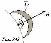 Безусловно, шаг, сделанный О. Френелем в теории волновых процессов был революционным. На основании этой основной идеи О.Френель сумел объяснить и рассчитать целый явлений, особенно, касающихся дифракции света. Однако, принцип Гюйгенса-Френеля нельзя отнести к числу фундаментальных физических законов, по своей сути он также является правилом, позволяющим рассчитывать волновую картину, но нуждающимся в своем строгом обосновании. Во времена Френеля самым существенным обоснованием этого принципа являлись следствия, результаты, полученные на его основе. Для того чтобы достичь лучшего согласия между результатами расчетов и экспериментальными данными самому О. Френелю пришлось постулировать (потому, что не мог объяснить), что амплитуда вторичной сферической волны не является одинаковой по всем направлениям, а убывает с ростом угла χ между нормалью к волновому фронту \(~\vec n\) и направлением распространения \(~\vec l\) вторичной волны. Поразительно, но О.Френель правильно «угадал» вид этой зависимости. На Рис. 343 она условно показана как уменьшение толщины контура вторичной волны. При небольших углах χ уменьшение амплитуды мало, поэтому мы ею в дальнейшем будем пренебрегать.