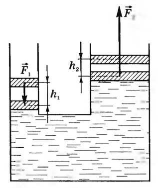 Сила F1 изменяет также потенциальную энергию жидкости в прессе. Но так как сила тяжести этой жидкости намного меньше силы F1. мы считали жидкость невесомой. В связи с этим необходимо отметить, что в реальных условиях уравнение (1) выполняется лишь приближенно.