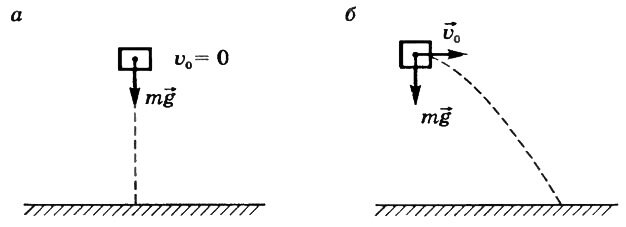 Так, например, под действием силы тяжести тело может двигаться вертикально вниз (рис. 3, а) и по параболе (рис. 3, б).