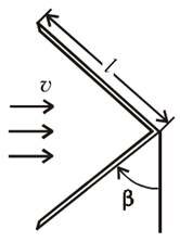 Любопытны опыты с телами простейшей геометрии. Например, обдувая струей воздуха (или воды) двугранники с различными углами раствора β, но с одинаковой шириной грани l, можно обнаружить, что наибольший коэффициент сопротивления имеет не плоская пластина (β = 0), а двугранник с некоторым отрицательным углом раствора β (рис. 4). В связи с этим можно задуматься о придании удлиненным крыльям самолетов обратной V-образности, как показано на рисунке 5 (тогда в плоскости, поперечной к набегающему потоку, течение будет напоминать обтекание того же двугранника с углом β < 0, а подъемная сила крыла — силу сопротивления двугранника). Но это относится уже к большой науке...