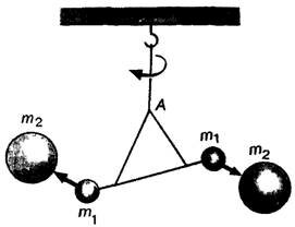 Точные измерения гравитационной постоянной впервые были проведены в 1798 г. английским физиком Г. Кавендишем с помощью прибора, называемого крутильными весами. Схематично крутильные весы показаны на рисунке 4.